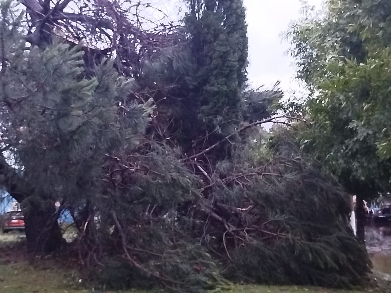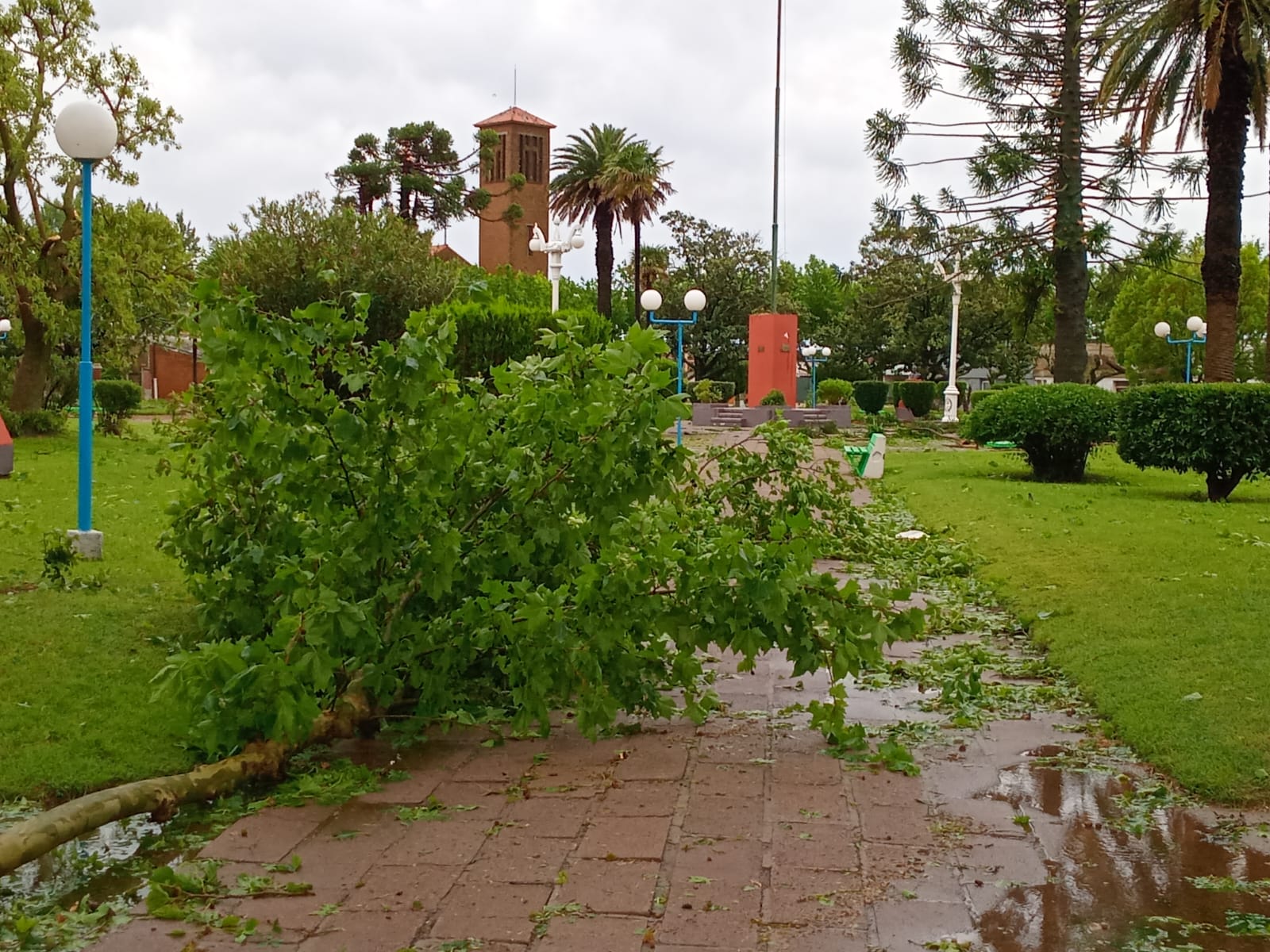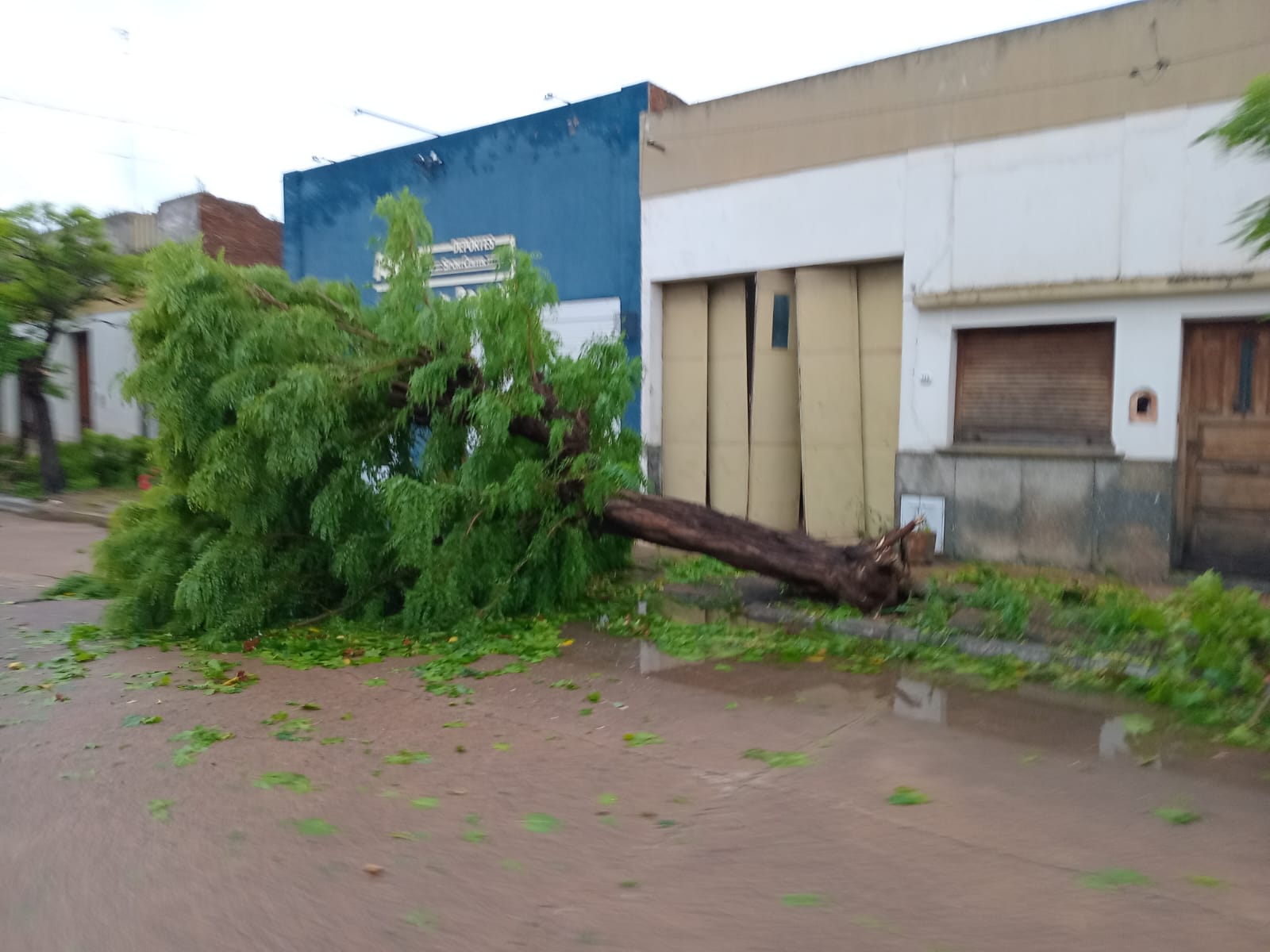 La localidad se encuentra sin servicio eléctrico debido a la interrupción del mismo por parte de la Cooperativa Eléctrica como medida preventiva y a la caída de postes en diferentes lugares.