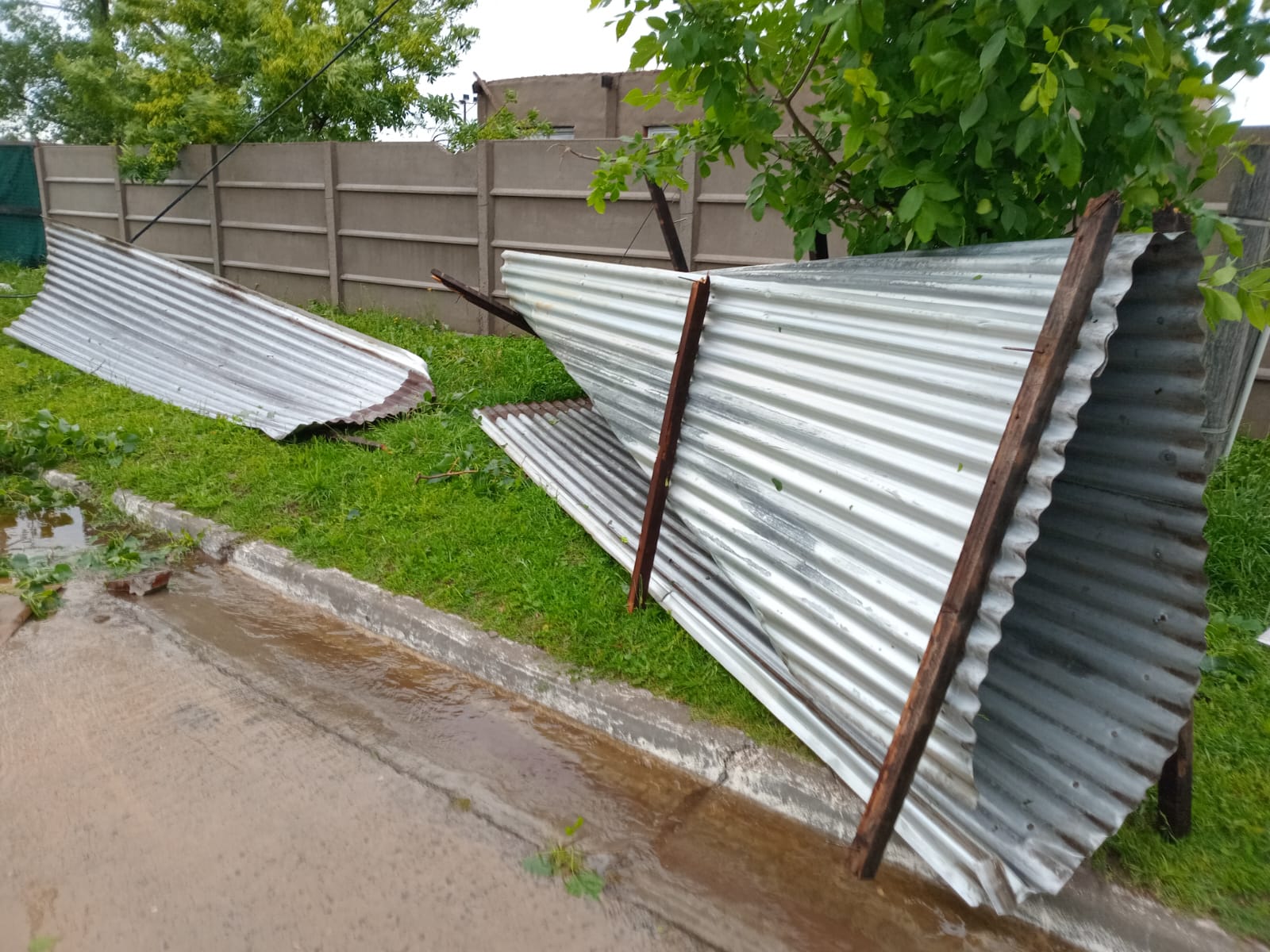 Se estima que hubo ráfagas superiores a los 100 kilómetros en algunos sectores, Bomberos y Defensa Civil trabajan desde anoche relevando viviendas. No se registran personas afectadas tras el fenómeno climatico, sí con daños materiales muy importantes.-