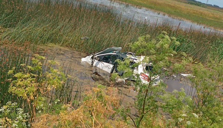 Sucedió este viernes al mediodía y el vehículo involucrado en el que viajaban dos personas de sexo femenino, quedo semisumergido en la cuneta del préstamo de la ruta.-