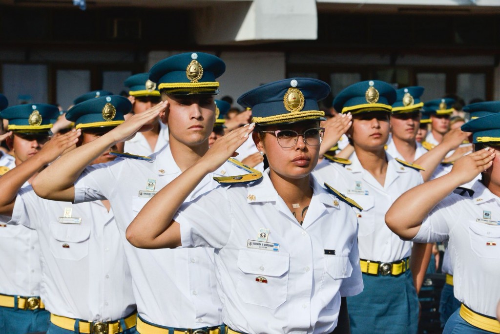 La directora de la Escuela de Cadetes, María José Anaya, felicitó a los nuevos oficiales y dio la última orden a los cadetes.
